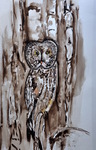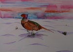2007Fazant in de sneeuw een verstilde aquarel met alleen een fazant in het landschap je 'hoort'de stilte