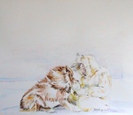 2007Schapen in de sneeuw heb ik geschilderd om het wollige van de schapen te combineren met het wollige van de sneeuw