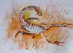 2009de schorpioen spat als het ware door de spetters van zand van het doek.