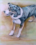 2009Een verstild landschap met daarin een Eskimo met zijn hond waarbij de wind speelt met hun vacht